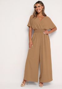 Brązowy Kopertowy Kombinezon z Gumką w Talii i Szerokimi Nogawkami Vimashea. Odkryj kopertowy kombinezon Vimashea ze wsuwanymi kieszeniami, który łączy elegancję z casualowym sznytem! Dekolt w kształcie litery V subtelnie eksponuje szyję, a gumka w talii, która po rozciągnięciu mierzy 95 cm, podkreśla sylwetkę. Szerokie nogawki zapewniają swobodę ruchów, co sprawia, że kombinezon ten będzie idealnym wyborem zarówno na spotkania ze znajomymi, jak i formalne uroczystości. Na co dzień zestaw go z trampkami i denimową kurtką, a na wieczorne wyjście dodaj do niego eleganckie szpilki i biżuterię. Efekt wow gwarantowany!