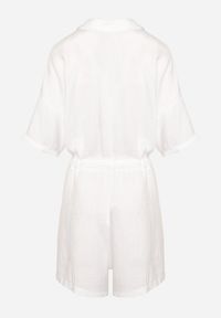 Biały Muślinowy Kombinezon z Bawełny Wiązany w Talii z Guzikami Dlirena. Kombinezon Dlirena to kwintesencja casualowego szyku z nutą elegancji. Bawełniany materiał gwarantuje przewiewność, a fason z wiązanym pasem pozwala subtelnie modelować sylwetkę. Guziki na linii dekoltu dodają charakteru, a krótkie rękawy uzupełniają całość. Tę uniwersalną część garderoby możesz założyć na lunch z przyjaciółką, spinając włosy w luźnego koka i dobierając espadryle, albo na wieczorne wyjście, zestawiając z delikatną biżuterią i eleganckimi sandałkami.