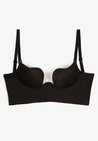 Czarny Biustonosz Miseczka B Push Up do Głębokiego Dekoltu Molaria. Biustonosz Miseczka B z efektem push-up to sekret Twojej idealnej sylwetki na każdą okazję. Biustonosz dzięki konstrukcji jest idealny do głębokiego dekoltu, a nisko usytuowane zapięcie z tyłu pozwoli eksponować plecy przy głębokich wycięciach. Wbudowane push up idealnie wyeksponuje biust. Sezon nie ma znaczenia, gdyż jest to baza idealna zarówno pod letnią sukienkę, jak i wieczorową kreację. Bądź pewna swojego looku w każdym detalu!