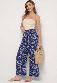 Niebieskie Spodnie z Bawełny z w Stylu Boho z Szerokimi Nogawkami i Gumką w Talii Jelvia. Odkryj spodnie Jelvia, które zachwycają swym boho charakterem i szerokimi nogawkami, podkreślającymi swobodę stylu. Gumka w talii zapewnia dopasowanie, a jednocześnie delikatnie modeluje figurę. Bawełna sprawia, że są doskonałym wyborem na cieplejsze dni - od wiosny aż po późne lato. Ich uniwersalny krój ze wsuwanymi kieszeniami pozwala łączyć je zarówno z prostą białą koszulką na co dzień.