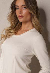 Jasnobeżowy Casualowy Sweter z Wiskozą Bawełną i Trójkątnym Dekoltem Miaressa. Sweter Miaressa z bawełną i wiskozą to must-have w Twojej casualowej garderobie. Dzięki swojej minimalistycznej linii idealnie sprawdzi się w codziennych zestawieniach. Subtelny dekolt w kształcie litery V podkreśla szyję. Fason swetra jest niezobowiązujący, a jego uniwersalny krój pasuje do różnorodnych sylwetek i okazji. Stwórz stylizację z jeansami i trampkami na dzień pełen obowiązków lub dodaj elegancką spódnicę i botki na wieczór z przyjaciółmi. Występuje w wersji plus size.