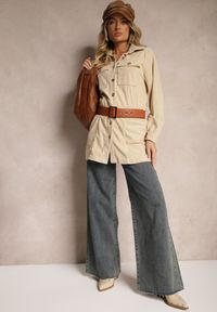 Jasnobeżowa Taliowana Koszula Sztruksowa o Długim Kroju z Kieszeniami Veloriana. Wyjątkowa koszula Veloriana to synonim elegancji w casualowym wydaniu. Taliowany fason podkreśli atuty sylwetki, a dłuższy krój zapewni wygodę i swobodę ruchów. Z łatwością sprawdzi się na co dzień w połączeniu z legginsami i kozakami, jak i podczas wieczornych wyjść, gdzie w zestawieniu z woskowanymi spodniami i szpilkami okaże się strzałem w dziesiątkę. Zapięcie na guziki i klasyczny kołnierzyk dodają jej charakteru, jednocześnie pozostawiając przestrzeń dla dodatków, które pozwolą wyrazić Twoją indywidualność.