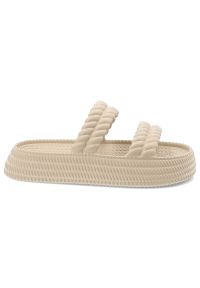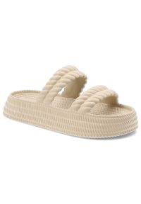 Beżowe Klapki Vinceza Wygodne Obuwie Damskie. Okazja: na co dzień, na plażę. Kolor: beżowy. Wzór: paski. Sezon: lato. Styl: casual, sportowy