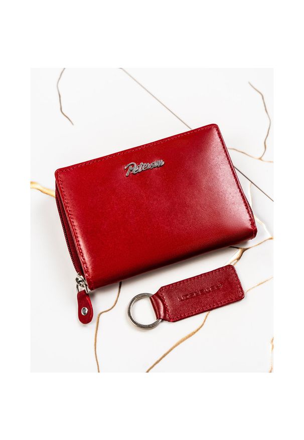 Zestaw prezentowy Peterson PTN SET-D-67 czerwony. Zestaw, który łączy w sobie elegancję i praktyczność. Skórzany portfel damski i skórzany brelok do kluczy. Produkty wykonane są wysokiej jakości skóry naturalnej. Zapakowane w firmowe pudełko.