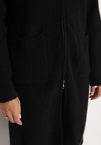 Czarny Kardigan z Wełną o Prostym Długim Kroju ze Stójką Zapinany na Suwak Boniala. Kardigan Boniala wyróżnia się prostym, długim krojem, który doskonale wpisuje się w klasyczne i uniwersalne stylizacje. Wyposażony w praktyczną stójkę i wygodne zapinanie na suwak, będzie perfekcyjnym uzupełnieniem zarówno codziennych, jak i bardziej formalnych zestawów. Długie rękawy zapewniają komfort i ochronę przed chłodem, a brak zbędnych zdobień podkreśla minimalistyczny charakter tego modelu. Stwórz niezapomniany look, łącząc go z prostym topem, rurkami i szpilkami na ważne spotkanie, lub noś na co dzień z ulubionymi sneakersami i jeansami dla niezobowiązującego, lecz stylowego efektu.