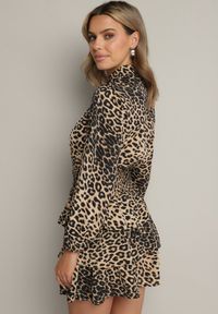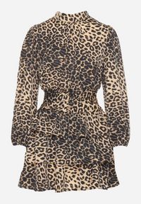 CIemnobeżowa Rozkloszowana Sukienka w Panterkę Zwężana w Talii z Falbanami Liliwia. Rozkloszowana Sukienka w Panterkę Zwężana w Talii z Falbanami Liliwia na guzik to prawdziwy hit dla miłośniczek mody, który łączy nowoczesne trendy z klasycznym wzorem. Sukienka ta subtelnie podkreśla figurę dzięki zwężeniu w talii i romantycznym falbanom. Długie rękawy czynią ją idealnym wyborem na chłodniejsze dni, a print dodaje stylu. Na co dzień połącz ją ze sneakersami i ramoneską, a na wieczór zamień buty na szpilki i dobierz minimalistyczną biżuterię, by olśnić przy każdej okazji!