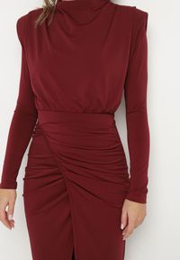 Bordowa Koktajlowa Sukienka o Dopasowanym Kroju z Marszczeniem Besel. Oto kreacja, która zachwyca swoją subtelną elegancją – koktajlowa sukienka Besiel o dopasowanym kroju z gumką w talii, która uwodzi marszczeniem i perfekcyjnie podkreśla sylwetkę. Po rozciągnięciu gumka osiąga wymiary: S/M - 41 cm i M/L - 43 cm. Sukienka nie posiada podszewki, jest zapinana na guzik przy karku. Dla wieczorowego looku dobierz do niej szpilki i elegancką kopertówkę. Kliknij i sprawdź, jak łatwe może być jej stylizowanie!