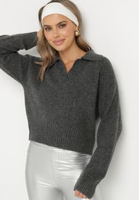 Ciemnoszary Sweter o Krótkim Kroju z Kołnierzykiem i Dekoltem w Serek Valentarisa. Zachwycaj elegancją dzięki naszemu swetrowi Valentarisa z bawełną o modnym krótkim kroju, który świetnie współgra z wysokimi spodniami czy spódnicą. Klasyczny kołnierzyk i dekolt w serek nadają tej propozycji wyrafinowany charakter. Idealny na różnorodne okazje – zarówno te codzienne, jak i wymagające eleganckiego szyku. Nosząc go z z jeansami i sneakersami będzie strzałem w dziesiątkę na weekendowe wyjście z przyjaciółmi.
