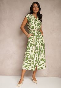 Zielona Sukienka Koszulowa z Kieszeniami w Geometryczny Print Arathia. Sukienka Koszulowa z Kieszeniami w Geometryczny Print Arathia to idealny wybór dla kobiet, które chcą wyróżnić się stylowym designem przy każdej okazji. Jej prosty, lecz elegancki krój koszulowy z klasycznym kołnierzem i subtelnym dekoltem w serek nadaje sylwetce lekkości, a krótkie rękawy doskonale spiszą się zarówno na co dzień, jak i w pracy. Geometryczny wzór dodaje charakteru i pewności siebie, a wsuwane kieszenie stanowią praktyczny dodatek. Na co dzień zestaw ją z trampkami i efektowną torbą, a na wieczorne wyjście postaw na szpilki i wyrazistą biżuterię. Sukienka nie posiada podszewki.