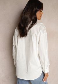 Biała Bawełniana Koszula z Kwiatową Aplikacją 3D Dolianis. Bawełniana Koszula z Kwiatową Aplikacją 3D Dolianis z regulowanymi rękawami na guziki to modna propozycja dla kobiet, które pragną dodać swojemu lookowi niebanalnego charakteru. Klasyczna linia z długimi rękawami i eleganckim kołnierzykiem sprawdzi się idealnie na co dzień, jak i przy formalniejszych okazjach. Delikatny dekolt w kształcie litery V subtelnie eksponuje szyję, a wyjątkowe zdobienia kwiatowe w 3D dodają koszuli wyrafinowanego uroku. Świetnie będzie się prezentować z dopasowanymi spodniami na spotkanie biznesowe lub ze zwiewną spódnicą na romantyczny spacer.