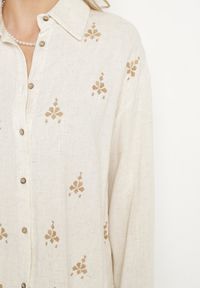 Biało-Beżowa Koszula z Lnu i Wiskozy Ozdobiona Haftem w Stylu Etno Alarisa. Odkryj koszulę Alarisa z lnu i wiskozy, ozdobioną haftem w etnicznym stylu, która doda niepowtarzalnego charakteru każdej stylizacji. Luźna linia oraz długie rękawy z klasycznym kołnierzykiem sprawiają, że doskonale wysmukla sylwetkę. Dzięki subtelnemu dekoltowi w kształcie litery V jest idealna na różne okazje – od casualowych spotkań po bardziej formalne wyjścia. Zestaw ją z jeansami i mokasynami na co dzień, lub z elegancką spódnicą i szpilkami na wieczór, a zachwycisz wszystkich swoją pewnością siebie i wyczuciem stylu.