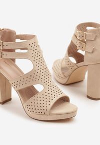 Beżowe sandały na słupku Renee z aplikacjami, na co dzień, casualowe