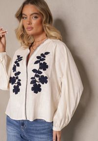 Beżowa Koszula z Bawełny o Kroju Oversize Ozdobiona Haftem w Kwiaty Felvesia. Koszula Felvesia to prawdziwa gratka dla fanek luźnych krojów i stylowych detali. Wykonana z bawełny, zachwyca oversize'owym fasonem na guziki i pięknym kwiatowym haftem, który dodaje jej wyjątkowego charakteru. Na co dzień zestaw ją z ulubionymi jeansami i sneakersami, a na wieczorne wyjście postaw na eleganckie spodnie i wyraziste kolczyki.