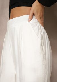 Białe Wiskozowe Spodnie o Szerokim Kroju z Lnem i Przeszyciami Fenelira. Spodnie Fenelira o szerokim kroju z wiskozy i lnu to must-have dla kobiet, które śledzą najnowsze trendy. Wysoki stan z gumką w pasie, ze wsuwanymi kieszeniami i eleganckie przeszycia podkreślają sylwetkę, dodając jej wyrafinowanego charakteru. Idealnie sprawdzą się zarówno na co dzień - zestawione z luźnym topem i sandałami, jak i na bardziej formalne okazje w duecie z elegancką bluzką i szpilkami.
