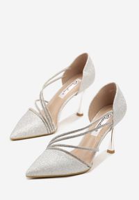 Renee - Beżowe Szpilki Vices z Wkładką ze Skóry Naturalnej Ozdobione Cyrkoniami Gioriana. Kolor: beżowy. Materiał: skóra. Wzór: aplikacja. Obcas: na szpilce. Styl: klasyczny, elegancki. Wysokość obcasa: średni