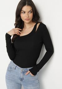 Czarna Bluzka z Asymetrycznym Dekoltem Tatelia. Bluzka z Asymetrycznym Dekoltem Tatelia to idealna propozycja dla kobiet ceniących modowy minimalizm i subtelną oryginalność. Elegancki asymetryczny dekolt doda jej nowoczesnego charakteru, a dopasowany krój podkreśla sylwetkę. Świetnie sprawdzi się na co dzień z ulubionymi jeansami i sneakersami, a wieczorem z ołówkową spódnicą i szpilkami stworzy wyjątkowy, formalny look.