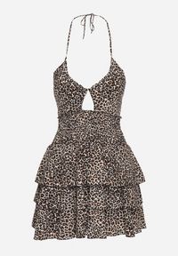 Czarno-Biała Sukienka w Cętki Wiązana na Szyi z Falbankami Filanne. Sukienka Filanne w cętki to harmonijne połączenie klasyki z nowoczesnym stylem. Jej wiązanie na szyi i lekko wycięty dekolt w kształcie litery V dodają romantyzmu, a falbany tworzą subtelny ruch. Idealna na wieczorne wyjścia – wystarczy dodać eleganckie szpilki i minimalistyczną biżuterię. Na co dzień zestaw ją z lekkimi sandałami i torebką typu tote, by podkreślić swoją modową świadomość. Na wysokości biustu usztywniane miseczki. W talii gumka, która po rozciągnięciu mierzy: m/l 93 cm, xl/xxl 97 cm.