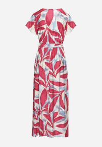 Różowa Wiskozowa Sukienka Kopertowa z Wiązanym Paskiem w Roślinny Wzór Annorea. Sukienka Annorea o kopertowym kroju z wiązanym paskiem, wykonana z przewiewnej wiskozy, to kwintesencja elegancji w nowoczesnym wydaniu. Dekolt w kształcie litery V pięknie eksponuje szyję, a krótki rękaw dodaje lekkości. Roślinny wzór sprawia, że sukienka idealnie wpisuje się w najnowsze trendy, jednocześnie zachowując ponadczasowy charakter. Na co dzień zestaw ją z sandałami i słomkowym kapeluszem, a na wieczór dodaj szpilki i biżuterię, by oczarować swoim wyglądem. Sukienka posiada elastyczną gumkę w pasie, która rozciąga się do 95 cm (S/M), 101 cm (L/XL), 103 cm (XL/XXL). Nie ma podszewki.