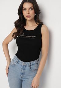 Czarny Top z Bawełną i Ozdobnym Nadrukiem Viannaes. Zachwycający top Viannaes o prostym kroju z bawełną i dekoracyjnym nadrukiem przyciąga wzrok i dodaje stylizacji nietuzinkowego akcentu. Ma klasyczny, okrągły dekolt. Doskonały na co dzień z szortami i klapkami.