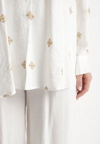 Biały Wiskozowy Komplet z Koszulą z Haftem i Szerokimi Spodniami Thannora. Wiskozowy komplet Thannora to idealne połączenie klasyki z nowoczesnością, które zadowoli każdą miłośniczkę niebanalnych stylizacji. Luźny krój koszuli ozdobiony subtelnym haftem dodaje elegancji, a szerokie spodnie z elastyczną gumką w talii i wsuwanymi kieszeniami zapewniają komfort noszenia, nie krępując ruchów. Dzięki delikatnemu materiałowi zestaw doskonale sprawdzi się w sezonie wiosenno-letnim, oferując swobodę na co dzień i elegancję na formalne wyjścia. Stylizuj go z minimalistycznymi sandałkami w wersji casualowej lub eleganckimi szpilkami na wieczór.