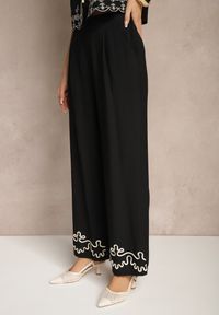 Czarne Wiskozowe Spodnie o Szerokim Kroju z Lnem i Przeszyciami Fenelira. Spodnie Fenelira o szerokim kroju z wiskozy i lnu to must-have dla kobiet, które śledzą najnowsze trendy. Wysoki stan z gumką w pasie, ze wsuwanymi kieszeniami i eleganckie przeszycia podkreślają sylwetkę, dodając jej wyrafinowanego charakteru. Idealnie sprawdzą się zarówno na co dzień - zestawione z luźnym topem i sandałami, jak i na bardziej formalne okazje w duecie z elegancką bluzką i szpilkami.