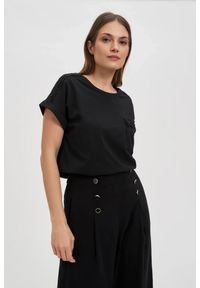 Czarna Bluzka z Bawełny Ozdobiona Koronką Desadria. Bluzka Desadria to kwintesencja kobiecego szyku i klasyki z delikatnym, koronkowym zdobieniem na linii ramion. Doskonale nadaje się na każdą okazję – od casualowych spotkań po bardziej formalne wydarzenia. Idealnie komponuje się z klasycznymi spodniami lub spódnicą ołówkową, tworząc look, który emanuje pewnością siebie i stylem.