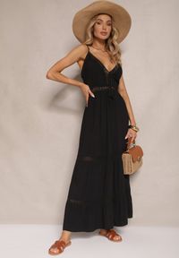 Czarna Sukienka z Bawełny o Rozkloszowanym Kroju na Ramiączkach Killifia. Sukienka Killifia to prawdziwy must-have dla każdej fashionistki, która ceni wygodę i styl. Rozkloszowany krój z regulowanymi ramiączkami i elastycznymi gumkami z tyłu podkreśli sylwetkę, a subtelny dekolt w serek doda uroku. Uszyta z bawełny, doskonale sprawdzi się zarówno na letnie spacery, jak i romantyczne kolacje. Połącz ją z sandałkami i lekkim kardiganem na co dzień lub dodaj biżuterię i eleganckie szpilki na wieczorne wyjścia.