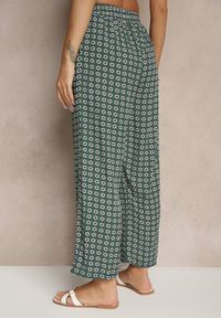 Zielone Spodnie o Szerokim Kroju High Waist z Geometrycznym Wzorem Farisia. Spodnie Farisia to must-have w każdej modnej szafie! Ich luźny krój z gumką w pasie i wsuwanymi kieszeniami perfekcyjnie podkreśla sylwetkę, a eleganckie wiązanie dodaje całości niepowtarzalnego charakteru. Te bawełniane spodnie sprawdzą się na spotkania z przyjaciółkami. Dzięki uniwersalnemu wzorowi i swobodnemu fasonowi będą idealnym wyborem.