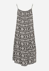 Czarna Rozkloszowana Sukienka na Ramiączkach z Bawełny w Ornamentalny Wzór Valpio. Szukasz idealnej sukienki, która połączy klasykę z aktualnymi trendami? Wybierz rozkloszowaną sukienkę Valpio wykonaną z bawełny, która świetnie układa się na sylwetce, podkreślając jej atuty. Kwadratowy dekolt oraz regulowane ramiączka dodają jej lekkości, a ornamentalny wzór przyciąga wzrok. Sprawdzi się zarówno na casualowych spacerach w połączeniu z espadrylami i plecioną torebką, jak i podczas wieczornych wyjść ze znajomymi, gdy zestawisz je z sandałami na szpilce i kopertówką. Sukienka nie posiada podszewki.