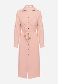 Różowa Koszulowa Sukienka z Materiałowym Paskiem Vivinara. Odkryj elegancję i wszechstronność koszulowej sukienki Vivinara na guziki ze wsuwanymi kieszeniami, której fason z paskiem i linia doskonale podkreślają sylwetkę. Jest idealna zarówno na codzienne wyjścia, jak i formalne okazje. Stylizuj ją z ulubionymi botkami i denimową kurtką na co dzień, lub zestaw ją z eleganckimi szpilkami i biżuterią na wieczorne przyjęcia!