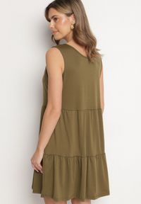Ciemnozielona Sukienka o Rozkloszowanym Kroju na Szerokich Ramiączkach z Guzikami Saniella. Sukienka o Rozkloszowanym Kroju na Szerokich Ramiączkach z Guzikami Saniella to idealna propozycja dla każdej kobiety, która ceni sobie uniwersalność i komfort. Jej rozkloszowany krój zapewnia swobodę ruchów, a zaokrąglony dekolt dodaje lekkości i wdzięku. Doskonale sprawdzi się zarówno na co dzień, zestawiona z espadrylami i plecioną torebką, jak i w formalnych stylizacjach – wystarczy dodać klasyczne szpilki i elegancką biżuterię, by stworzyć look idealny na wieczorne wyjście. Sukienka wyróżnia się subtelnymi guzikami, które nadają jej charakteru. Nie posiada podszewki.