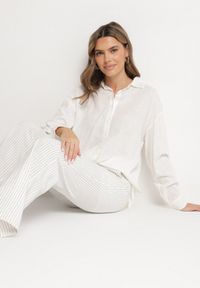 Białe Bawełniane Spodnie z Lnem o Szerokim Kroju z Wysokim Stanem Zenpio. Niezwykle stylowe spodnie Zenpio to idealna propozycja dla kobiet, które cenią sobie elegancję i wygodę. Dzięki wysokiemu stanowi i szerokiemu krojowi świetnie podkreślają sylwetkę, jednocześnie zapewniając komfort noszenia. Posiadają funkcjonalne wsuwane kieszenie oraz elastyczną gumkę z tyłu w pasie. Świetnie sprawdzą się zarówno na co dzień, zestawione z luźnym T-shirtem i sneakersami, jak i na formalne okazje, gdy połączysz je z elegancką bluzką oraz szpilkami. Subtelny wzór oraz naturalny materiał sprawiają, że te spodnie to must-have w garderobie każdej miłośniczki mody!