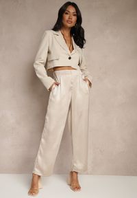 Beżowe Eleganckie Spodnie o Szerokim Kroju z Satynowym Połyskiem Lionea. Odkryj wyjątkowe spodnie Lionea! Ich szeroki krój z gumką z tyłu talii zapewnia idealne dopasowanie, a satynowy połysk dodaje elegancji i szyku. Świetnie sprawdzą się zarówno na co dzień, jak i podczas formalnych okazji – wystarczy, że zestawisz je z klasyczną koszulą i szpilkami, by zabłysnąć w biurze, lub połączysz z T-shirtem i balerinkami na spotkanie ze znajomymi. Wyposażone we wsuwane kieszenie i praktyczne zapięcie na suwak, są nie tylko stylowe, ale także funkcjonalne. Musisz je mieć!