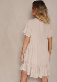 Jasnobeżowa Bawełniana Sukienka Rozkloszowana z Wiązaniem przy Dekolcie Mepova. Odkryj urok bawełnianej sukienki o rozkloszowanym kroju Mepova, która łączy wygodę z elegancją! Jej delikatny dekolt z przyciągającym wzrok wiązaniem oraz lekko rozszerzany fason zapewniają komfort noszenia, tworząc zjawiskowy look na każdą okazję. Idealna zarówno na co dzień, jak i na formalne spotkanie – skomponuj ją z klasycznymi balerinkami i minimalistycznym plecakiem w wersji casualowej, a wieczorem postaw na szpilki i torebkę z łańcuszkiem. Sukienka nie posiada podszewki.