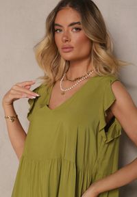 Zielona Bawełniana Sukienka Rozkloszowana z Falbankami Mirlio. Sukienka Mirlio to must-have w szafie każdej modnej kobiety! Jej rozkloszowany fason oraz falbanki dodają lekkości, tworząc idealny balans. Z powodzeniem sprawdzi się na co dzień – w zestawieniu z espadrylami i denimową kurtką, jak i na specjalne okazje – w połączeniu z eleganckimi szpilkami i klasyczną kopertówką. Wykonana z bawełny.