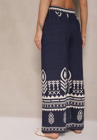 Granatowe Szerokie Spodnie z Wiskozy z Gumką w Talii Zdobione Etnicznym Wzorem Soleldi. Odkryj swój stylna nowo z szerokimi spodniami Soleldi, które łączą w sobie wygodę i etniczny urok. Wysoki stan i gumka w talii zapewniają doskonałe dopasowanie, a przewiewne nogawki idealnie sprawdzą się w ciepłe dni. Świetnie wyglądają zarówno w casualowych stylizacjach z espadrylami i lnianą koszulą, jak i w formalnych zestawieniach — wystarczy połączyć je z elegancką bluzką i szpilkami. Dodaj do tego subtelną biżuterię, a stworzysz niezapomnianą kreację, która podkreśli Twój charakter i pewność siebie w każdej sytuacji!