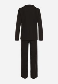 Czarny Garniturowy Komplet Marynarka i Spodnie z Kontrastującymi Zdobieniami Davirielle. Stylowy komplet Davirielle to idealna propozycja dla kobiet, które cenią ponadczasową klasykę z nowoczesnym twistem. Marynarka o krótkim fasonie na guziki i szerokie spodnie świetnie sprawdzą się zarówno na casualowe wyjścia, jak i na formalne okazje – wystarczy zmienić dodatki! Zdobienia w kontrastującym kolorze przyciągają wzrok i dodają całości charakteru. Stylizuj go z koszulą i szpilkami na wieczorne spotkanie lub z T-shirtem i sneakersami na co dzień! Spodnie posiadają elastyczną gumkę w talii, wsuwane kieszenie oraz zapięcie na suwak i guzik.