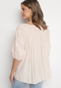 Jasnoróżowa Bluzka z Ozdobnymi Marszczeniami i Rękawami w Gumkę z Wiskozą Wenessa. Bluzka Wenessa z wiskozą to idealny wybór dla tych, którzy cenią sobie klasyczny urok z nowoczesnym twistem. Jej subtelne marszczenia na dekolcie i rękawy z gumkami nadają jej romantycznego charakteru. Dzięki luźnemu fasonowi na guziki jest idealna na wiosenne spacery, a w zestawieniu z jeansami i balerinkami stworzy modową interpretację codzienności.