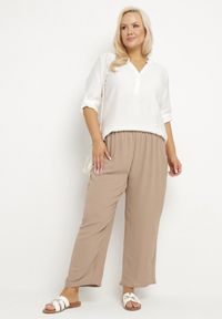 Ciemnobeżowe Szerokie Spodnie z Bawełną i Wysokim Stanem Naitte. Odkryj klasykę w nowoczesnym wydaniu dzięki szerokim spodniom Naitte! Te spodnie z wysokim stanem z gumką w pasie i wsuwanymi kieszeniami doskonale akcentują talię. Idealne na codzienne wyjścia - zestaw je z białym t-shirtem i sneakersami lub na formalne okazje - wystarczy dodać elegancką bluzkę i szpilki. Wykonane z bawełną, będą świetnym wyborem!