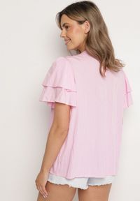 Różowa Bluzka z Wiskozą o Trapezowym kroju z Falbankami i Elastyczną Wstawką Dorlimi. Odkryj bluzkę Dorlimi, która łączy w sobie nowoczesny design z ponadczasową klasyką – jej trapezowy krój i delikatne falbanki nadadzą Twojej sylwetce wdzięku. Dzięki elastycznej wstawce bluzka doskonale dopasowuje się do ciała, a jej subtelny dekolt tworzy elegancki akcent, idealny zarówno na co dzień, jak i na formalne wyjścia. Świetnie sprawdzi się z jeansami i sneakersami na spotkanie z przyjaciółmi, a na romantyczną kolację wystarczy połączyć ją z ołówkową spódnicą i szpilkami. Musisz ją mieć!