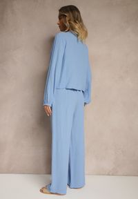 Niebieski Komplet z Bawełny Wiązana Bluzka i Szerokie Spodnie Palanniela. Odkryj niezwykły komfort i styl w komplecie Palanniela, który łączy elegancję z casualowym sznytem. Wiązana bluzka z długim rękawem doskonale eksponuje sylwetkę, a szerokie spodnie ze wsuwanymi kieszeniami i gumką w pasie zapewniają swobodę ruchów. Wykonany z bawełny, zestaw Palanniela to doskonały wybór na co dzień w połączeniu z balerinkami i plecioną torebką, ale również znakomity wybór na formalne spotkania — wystarczy dodać szpilki i kopertówkę. Musisz go mieć!