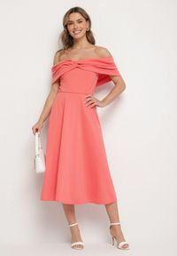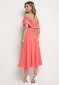 Pomarańczowa Rozkloszowana Sukienka z Odsłoniętymi Ramionami i Drapowaniem Odilene. Sukienka Odilene to prawdziwy must-have dla każdej stylowej kobiety! Charakteryzuje się pięknym, rozkloszowanym fasonem, który podkreśla sylwetkę, a odkryte ramiona dodają jej wyjątkowej kobiecości. Będzie idealna na formalne wyjścia. Doskonale skomponuje się z sandałami na obcasie na letnie przyjęcia.