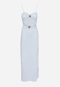 Jasnoniebieska Sukienka Dopasowana na Ramiączkach z Wycięciami pod Biustem i Metalowymi Detalami Galentia. Sukienka Dopasowana na Ramiączkach z Wycięciami pod Biustem i Metalowymi Detalami Galentia to propozycja dla kobiet, które pragną połączyć elegancję z nowoczesnym stylem. Metalowe detale subtelnie przyciągają wzrok. Idealna na romantyczną kolację czy wieczorne wyjście z przyjaciółmi, świetnie sprawdzi się w połączeniu z klasycznymi szpilkami na szczególne okazje lub ze sneakersami na co dzień. Ramiączka są regulowane, a w biuście ma wszyte miseczki.