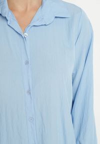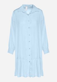 Niebieska Sukienka z Wiskozą o Koszulowym Kroju z Falbanką Penzedi. Odkryj wyjątkową sukienkę z wiskozy o koszulowym kroju i falbanką Penzedi na guziki, która łączy w sobie elegancję z codziennym luzem. Z klasycznym kołnierzykiem i długimi rękawami, stanowi idealną bazę na każdą okazję: wystarczy dodać skórzaną kurtkę i botki na co dzień lub zestawić ją ze szpilkami i biżuterią na formalne wyjście. Jej subtelny design sprawia, że poczujesz się stylowo, niezależnie od sytuacji. Nie czekaj, uzupełnij swoją garderobę o ten uniwersalny must-have!