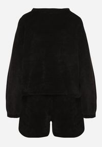 Czarny Dzianinowy Komplet Bluza i Szorty Novanisa. Odkryj dzianinowy komplet Novanisa! Ten uroczy zestaw składający się z luźnej bluzy i szortów ze wsuwanymi kieszeniami i z gumką w pasie idealnie sprawdzi się na co dzień. W zestawieniu z trampkami stworzysz sportowy look, a ze sneakersami i czapką z daszkiem zyskasz stylizację na spacer.