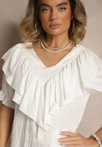 Biała Bluzka z Wiskozą Ozdobiona Falbankami Fadelena. Odmień swoją garderobę z bluzką Fadelena z Wiskozą, która łączy w sobie elegancję! Falbanki dodają lekkości całej stylizacji. Idealna na spotkania w mieście, ale także na wieczorne wyjścia — wystylizuj ją z jeansami i botkami lub spódnicą midi i szpilkami, aby uzyskać zestaw, który zachwyci każdego.