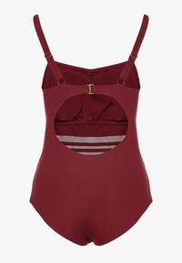 Bordowy Strój Kąpielowy Ozdobiony Sznurkiem i Wycięciem na Plecach Ulosanira. Poczuj się modnie nad wodą w naszym niezwykłym stroju kąpielowym Ulosanira, który łączy nowoczesny design z klasycznymi akcentami. Z wyjmowanymi miseczkami, ściągany sznurkiem przy dekolcie, zapinany na plecach na metalowe zapięcie. Ozdobiony stylowym sznurkiem i efektownym wycięciem na plecach, z pewnością przyciągnie spojrzenia na plaży czy przy basenie. W tym stroju poczujesz się zarówno swobodnie, jak i kobieco!