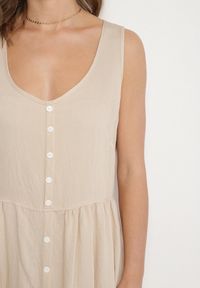 Beżowa Wiskozowa Sukienka o Rozkloszowanym Kroju z Guzikami Natesana. Odkryj swój nowy, ulubiony element garderoby z sukienką Natesana! Ta wiskozowa kreacja w rozkloszowanym kroju zapewni Ci elegancję w każdej sytuacji. Guziki przyciągają wzrok i nadają charakteru. Sukienka doskonale sprawdzi się na codziennych spacerach z przyjaciółkami, w zestawieniu z trampkami.