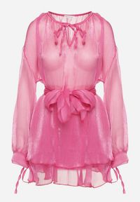 Fuksjowa Sukienka Ozdobiona Wiązaniem i Paskiem Nivoren. Sukienka Nivoren z paskiem i podszewką to połączenie klasyki z nowoczesnością, idealna dla kobiet, które cenią sobie elegancki minimalizm. Jej zwiewny fason z długimi rękawami z gumką w pasie doskonale podkreśla sylwetkę, a wiązanie w talii dodaje dziewczęcego uroku. Dzięki uniwersalnemu stylowi, sukienka sprawdzi się zarówno na codzienne wyjścia, zestawiona z białymi sneakersami, jak i na wyjątkowe okazje, w towarzystwie eleganckich szpilek. Z pewnością stanie się ulubioną propozycją. Gumka w pasie rozciąga się o dodatkowe 13 cm.