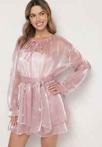 Różowa Sukienka Ozdobiona Wiązaniem i Paskiem Nivoren. Sukienka Nivoren z paskiem i podszewką to połączenie klasyki z nowoczesnością, idealna dla kobiet, które cenią sobie elegancki minimalizm. Jej zwiewny fason z długimi rękawami z gumką w pasie doskonale podkreśla sylwetkę, a wiązanie w talii dodaje dziewczęcego uroku. Dzięki uniwersalnemu stylowi, sukienka sprawdzi się zarówno na codzienne wyjścia, zestawiona z białymi sneakersami, jak i na wyjątkowe okazje, w towarzystwie eleganckich szpilek. Z pewnością stanie się ulubioną propozycją. Gumka w pasie rozciąga się o dodatkowe 13 cm.